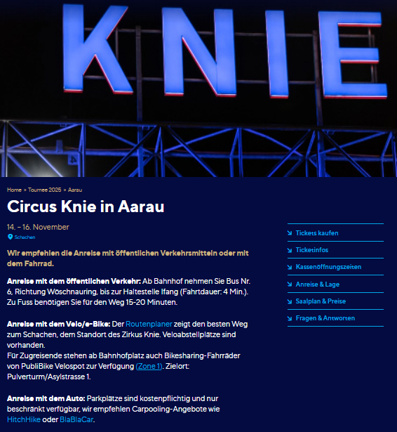 - aargaumobil: Kurzleitfaden „Mobilitätsmanagement bei Veranstaltungen (2017) [PDF, 1.27 MB]